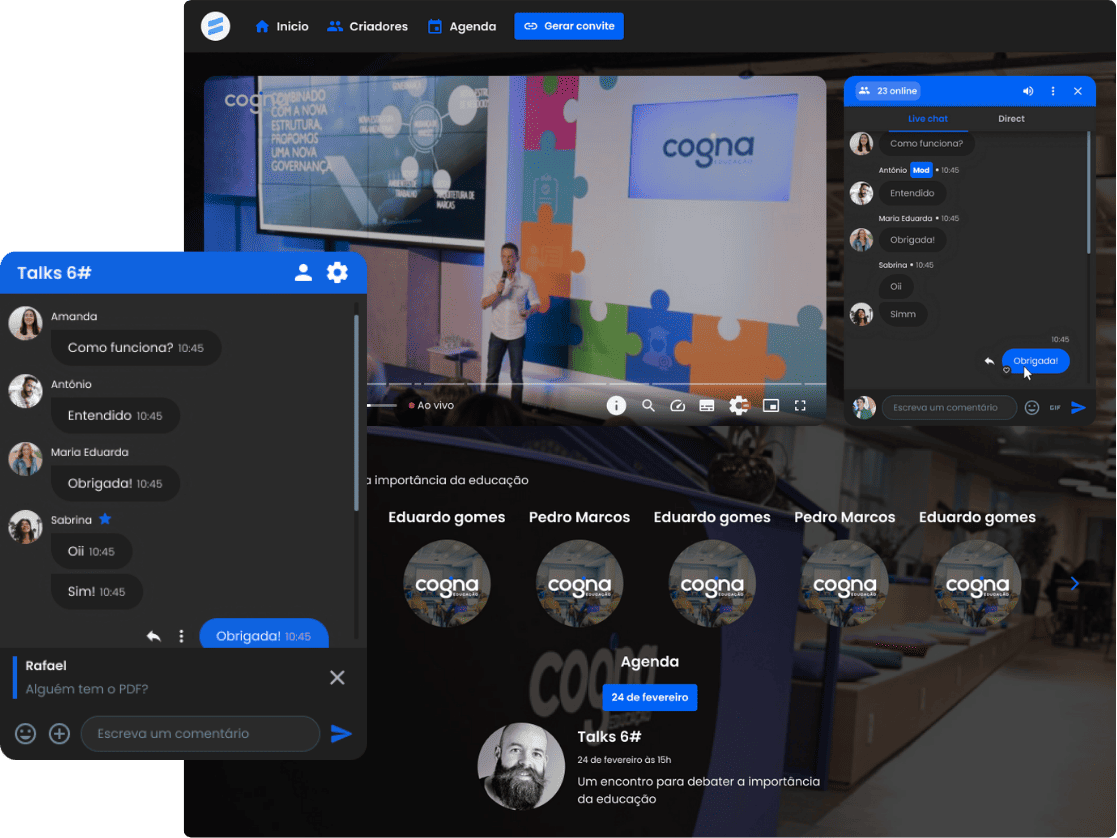 Plataformas tradicionais de streaming criam experiências passivas. O público assiste, não interage, não gera dados — e desaparece. Você termina a live com números soltos, sem clareza do que funcionou, do que prendeu atenção ou do que poderia gerar conversão.